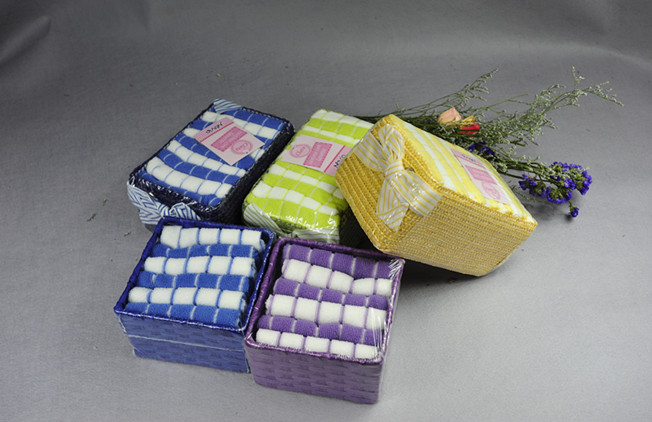 BT-03, color striped towel in basket, 100% polyeaster, 30*30cm