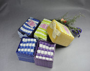 BT-03, color striped towel in basket, 100% polyeaster, 30*30cm
